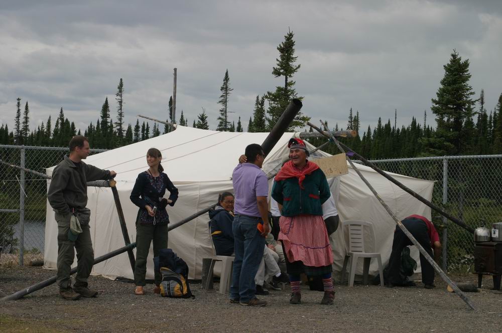 Drumming can also be used to show support. One elder invited a drummer to play before she left with a group to walk on the land. He came to their tent and she and her sisters danced. It was a way of wishing them good luck on their journey. He sang, saying “I will take care of you, I will look after you on the walk.” The people in the group felt very honored and special that an elder had come to drum for them. On another occasion, a drummer played at a community meeting: